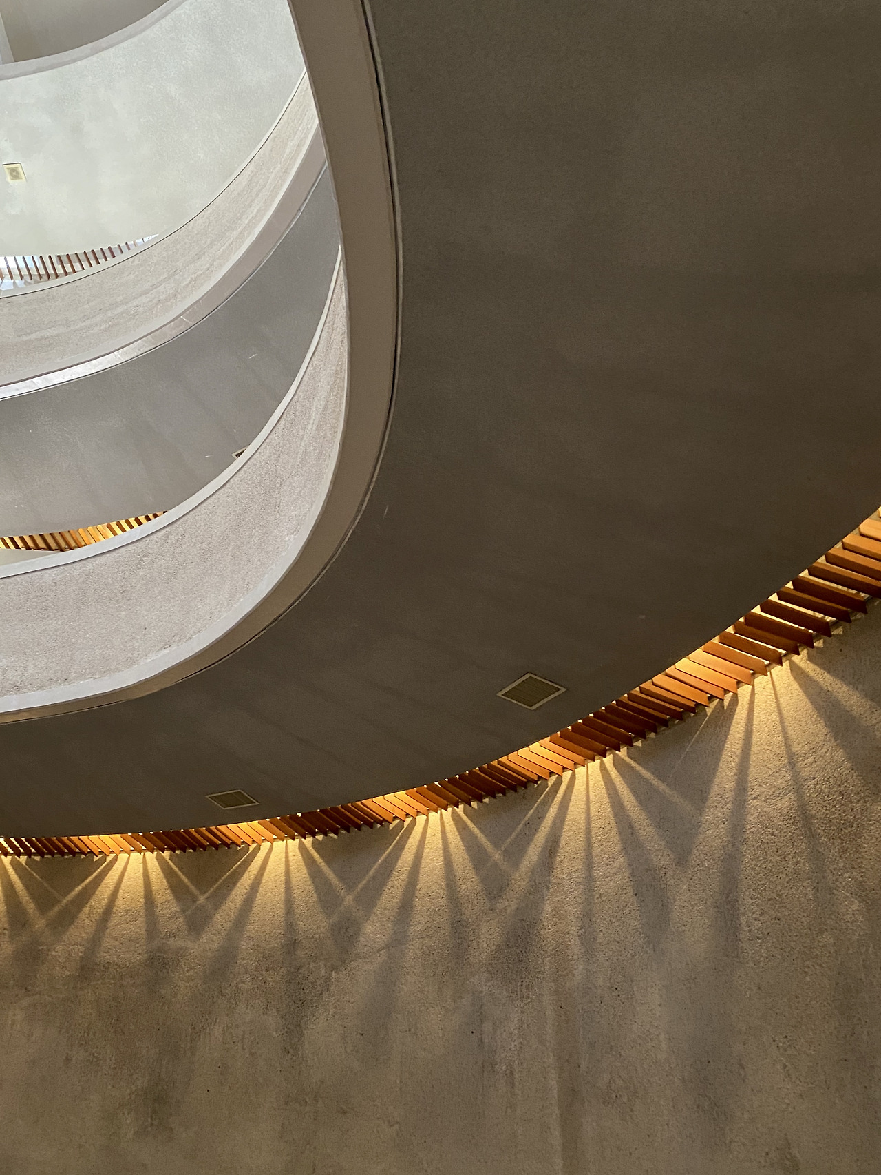 가장 먼저 눈에 들어오는 건, 나선형의 스파이럴 구조. 건물의 형상 또한 우아하다. 30년도 더 된 오래된 건물이지만 곡선의 매끄러움이 어색하지 않게 표현되어 있고, 특히나 오래된 목재난간이 멋스럽게 어울린다.