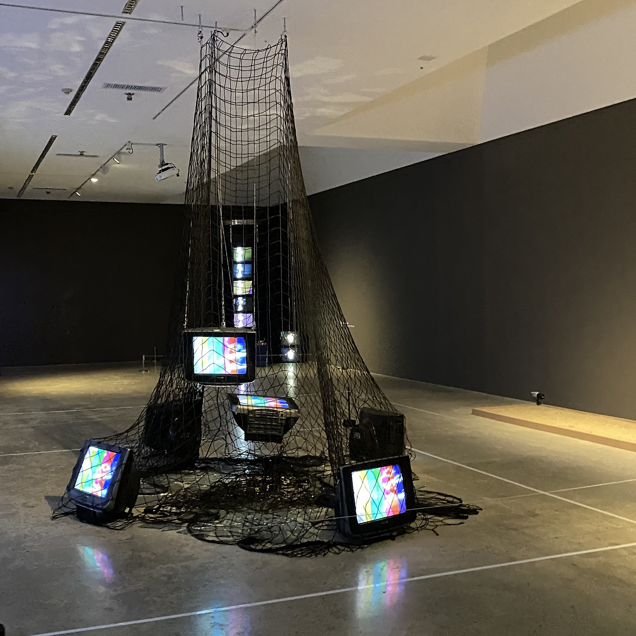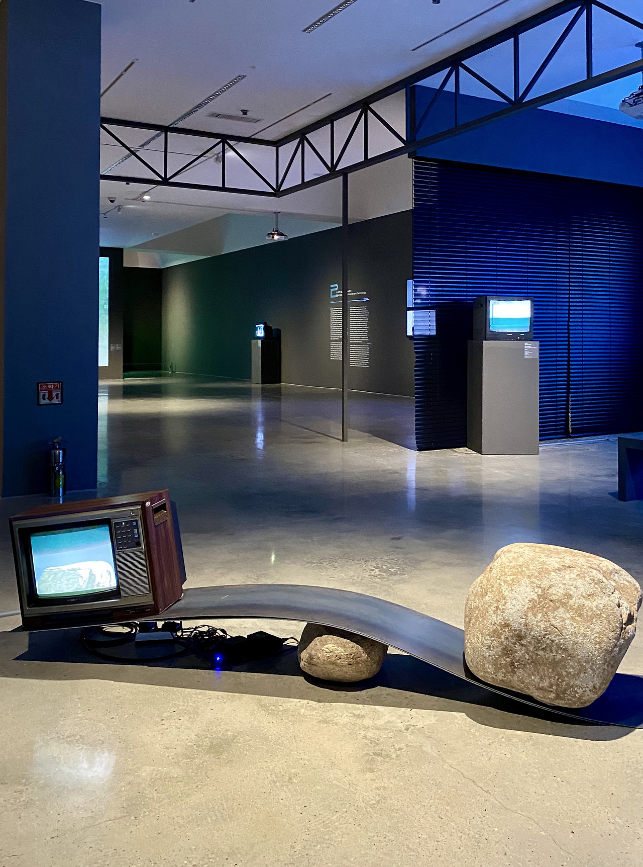 작품 하나하나가 담고 있는 의미들이 강렬했고, 이를 수 분의 시간동안 집중해서 보다보니, 점점 지쳐갔다. 집중할 수 있는 시간이 줄어드는 요즘에 과연 이 전시들을 다 관람하는 사람들이 있을까 하는 의문이 들었다. 어둡고 자극적인 영상들만 접하다보니 답답함과 메스꺼움을 느꼈고, 전시를 채 다 보기도 전에 한 숨 돌리자며 복도로 나왔다. 복도에 나와서 마주한 장면은 지친 머리를 환기시키기에 적절했다.