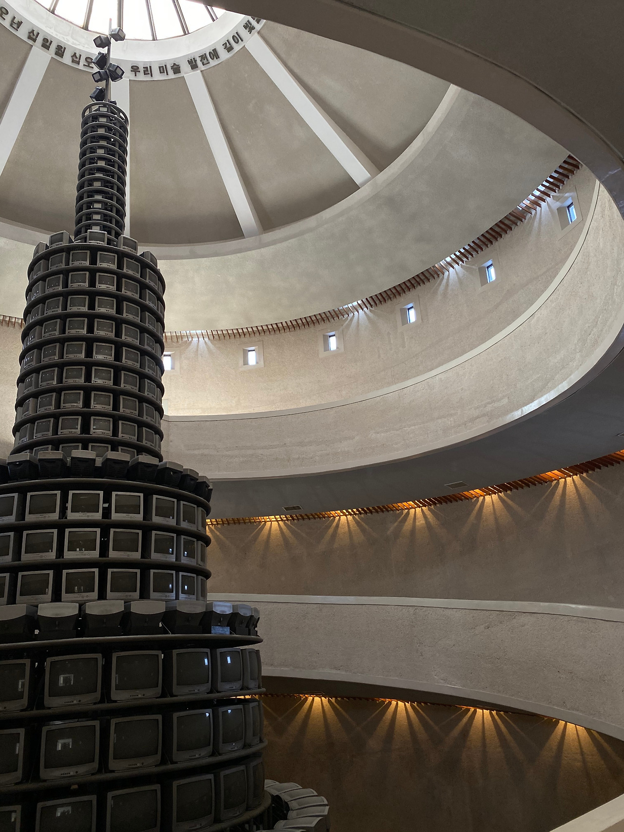 "다다익선"이 설치된 중앙 원형 전시홀에는 수평 천창이 설치되어 있어, 빛이 깊게 들어오지 않는다. 따라서 간접조명들을 다수 설치하지 않으면 조금은 어두운 공간이 된다.