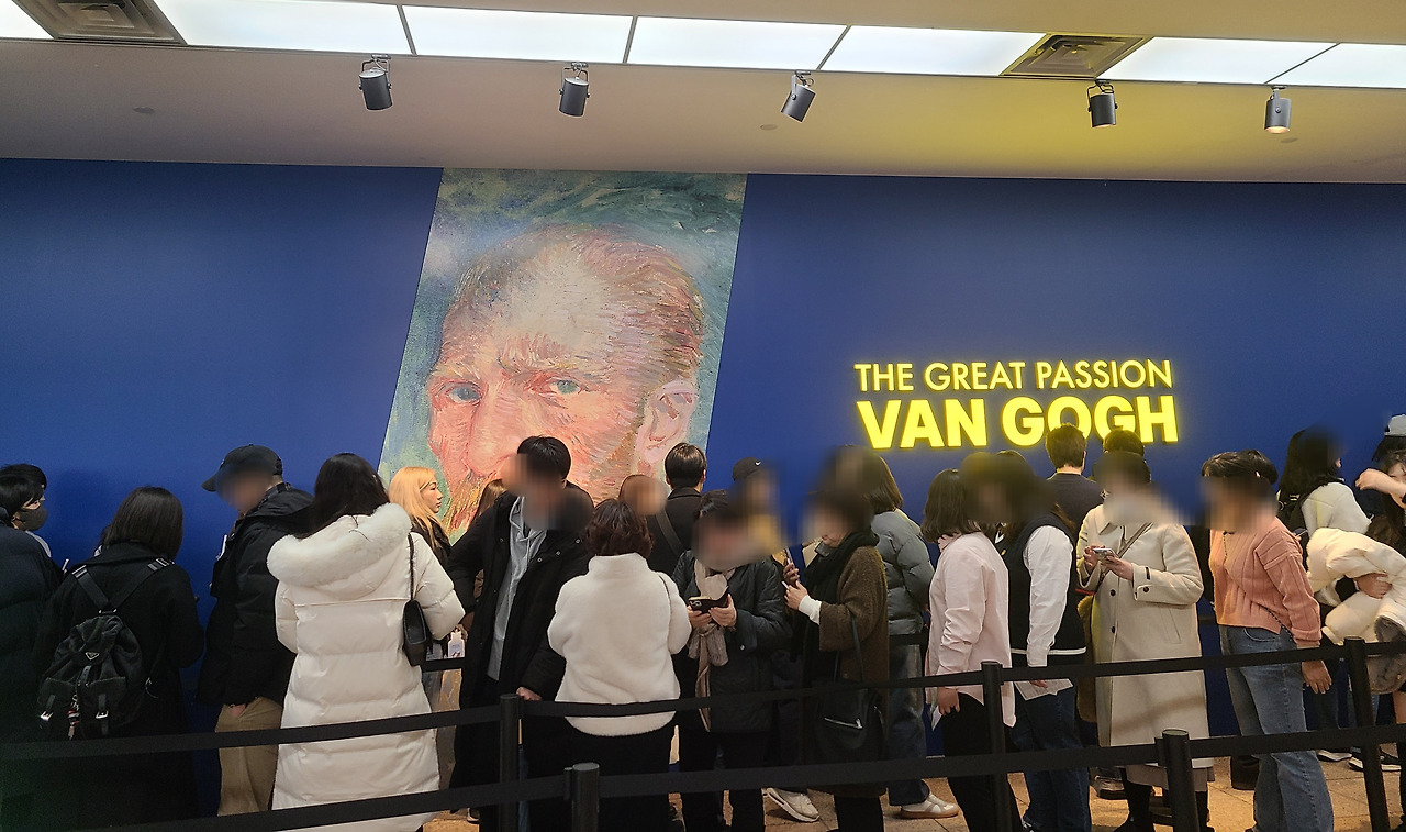 반 고흐 전시회에 입장하기 위해 기다리는 사람들