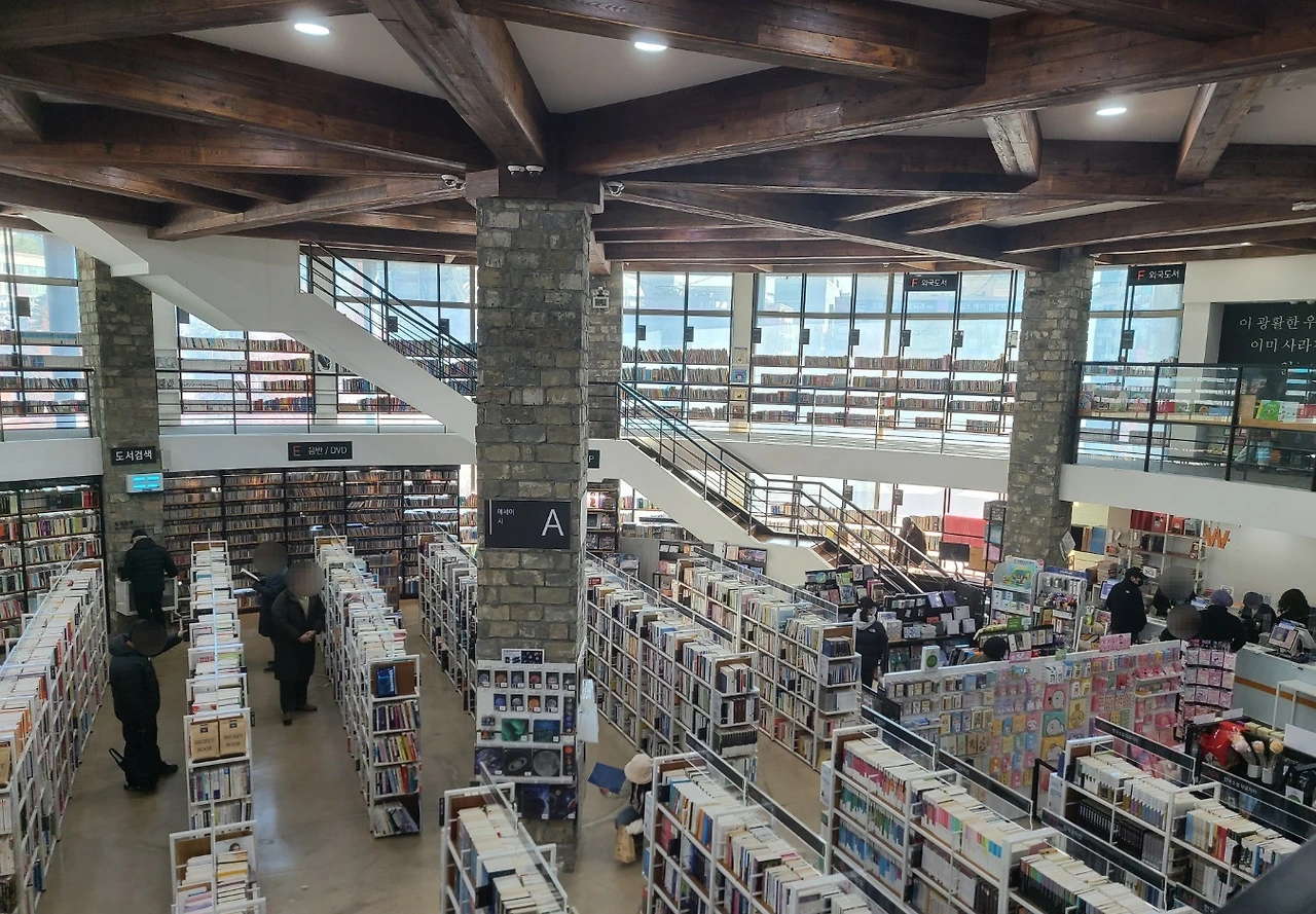 대형 중고서점 안 풍경/ 중고서점에 많은 사람들이 찾아와 책을 고르고 있다.