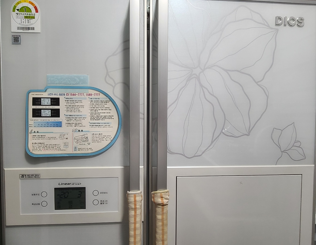 교체하면 고장도 없는 이 제품은 쓰레기가 될 것이고. 환경에도 안 좋지 않겠냐는 말을 하며, 나는 홍보 전단을 받는 것으로 대신 답했다. 정수기 필터 교체가 끝난 후, 주방 맞은 편에 있던 꽃무늬 냉장고를 보시며 반가움을 표시했다. 나의 냉장고도 결혼할 때 혼수로 장만해 함께 나이 들어가고 있는 나의 반려 냉장고다.