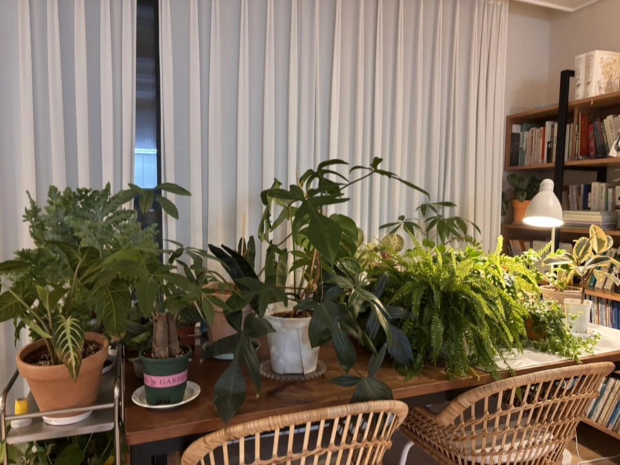 번외로 나의 식물들을 걱정해 주시는 분들이 많았는데 식물은 안방, 식탁, 거실 테이블 세 군데로 나누어서 모아두고 받침을 넉넉한 사이즈로 받쳐 두었다. 요렇게 모아 놓아야 종종 들러서 물을 주겠다고 했던 엄마가 힘들지 않을 것 같았다. 구체적으로 말하자면 엄마가 식물들을 놓치지 않고 챙길 수 있도록 하기 위해서 나름 머리를 썼다. 어떻게 떠나지?라는 물음표에 대한 답은 그저 하고자 마음먹으면 방법은 생긴다는 결론으로 이어졌다.