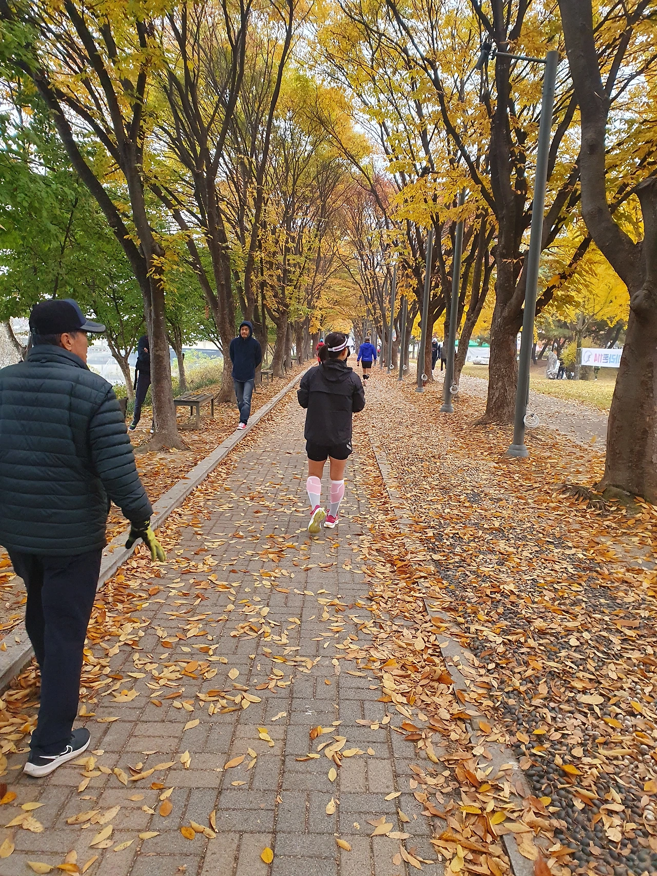 러닝 크루 훈련 중,