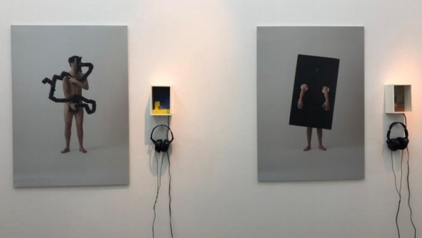 귀 퐁데 (Gui Ponde) 작가는 본인의 신체를 ‘사회적 조각’으로 내놓아 눈길을 끌고 있다. 검은 스크린에 구멍을 뚫어 일부 신체 부위만을 내놓고, 손가락 끝에 사슬을 묶은 사진에 헤드셋을 끼면 “나는 (스마트폰) 스크린을 만질 수 없다”는 문구가 흘러나온다. 컵케이크로 몸을 감싼 사진은 “나는 단 것을 먹고 욕망을 채운다”는 말이 나오는 식이다. 관람객은 귀 퐁데의 몸을 보면서 몸이 아닌 일상 속의 나 자신을 떠올리고, 몸을 둘러싼 괴기스럽고, 기계적인 소리를 통해 불편한 타인의 시선과 감각까지 느끼게 된다.