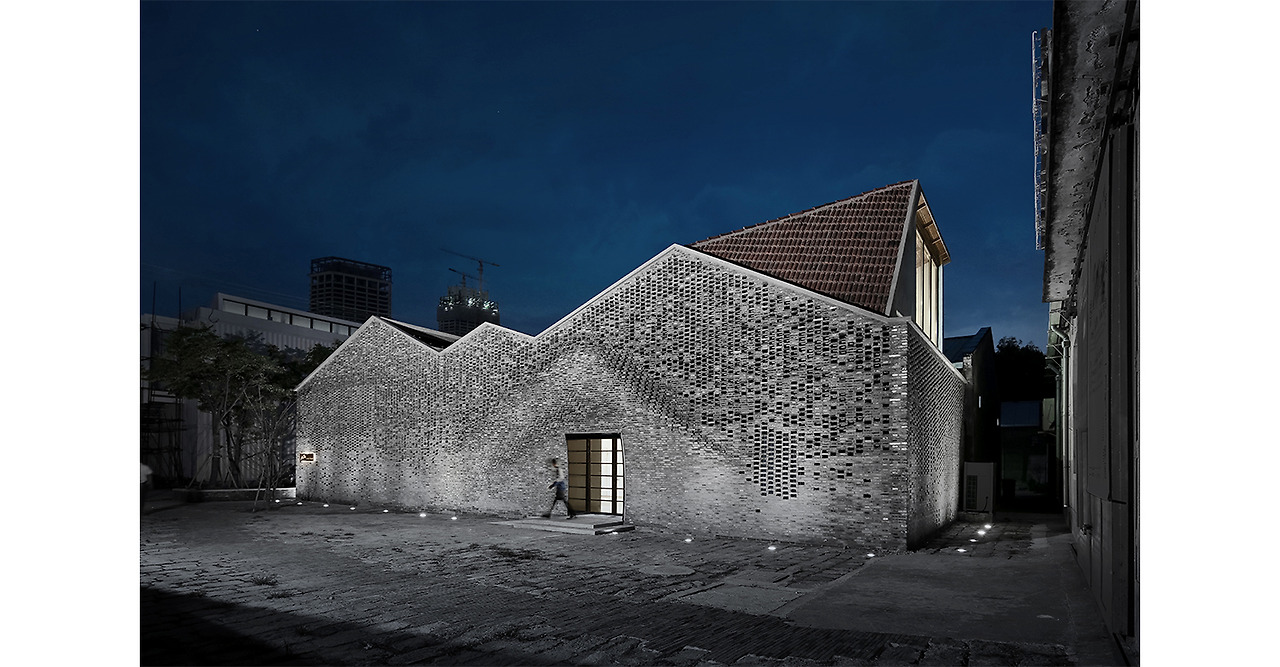 "허물어져 가던 오래된 벽돌은 곡면의 벽체로 재조정되었습니다. 이를 통해 우리는 인간과 벽돌, 기계와 건축, 디자인과 문화 사이의 연결을 말하려 합니다. The dilapidation of these old bricks, coordinated with the stretched display of the curving walls, are narrating a connection between people and bricks, machines and construction, design and culture."