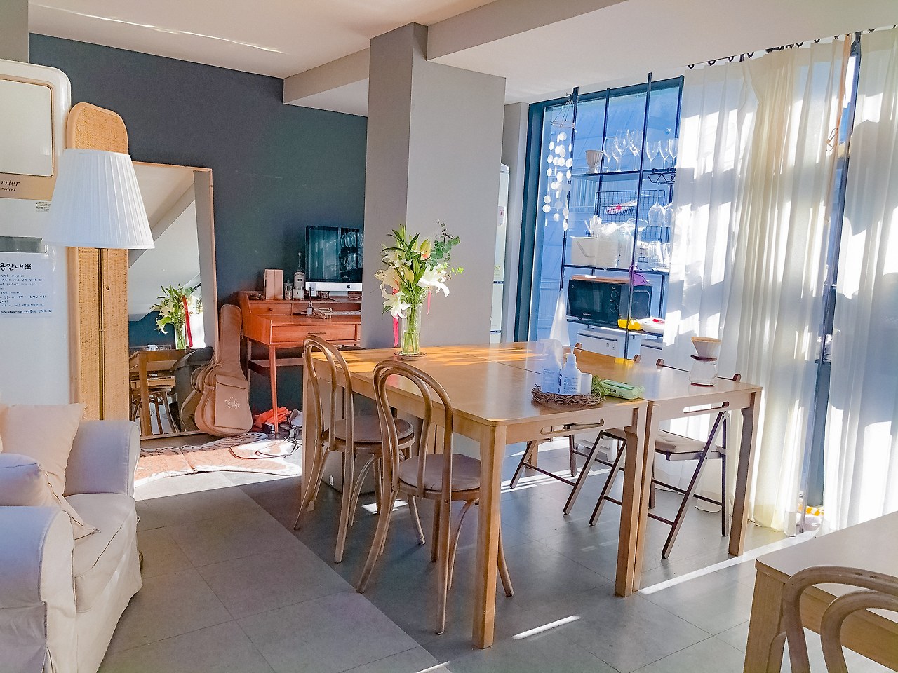 어쩌다가 6번으로 밀려났는지 모르겠지만, 160만 원의 월세를 내려다보니 공간 대여도 하고 있다. 애초에 꽃수업을 위해 마련한 장소인지라, 장소가 수업에 최적화되어 있는 건 어쩔 수 없는데, 근데 막상 수업으로 대여되는 경우는 거의 없다. 오히려 파티와 촬영이 대다수인데, 책상이 너무 많아서 파티 하기에도 걸리적거리고, 쇼핑몰 스튜디오처럼 예쁜 소품도 잔뜩 갖다 놓을 수가 없다.