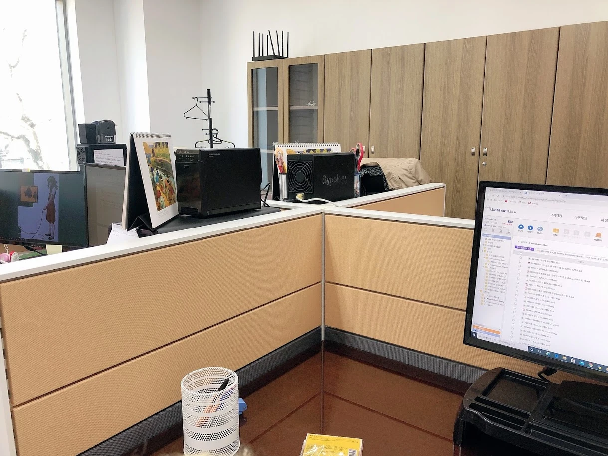 설상가상으로, 매물을 실컷 보다가 한껏 높아진 눈으로 얻은 작업실의 월세는 135만 원이고, 부가세 10%에 관리비까지 더하면 매달 160만 원이 숨만 쉬어도 내 통장에서 로그아웃 한다. 그리고 이건 전기세나 인터넷, 비품비 등 기타 잡비는 1원도 들어가지 않은 금액이다. 지금까지 10개월 동안 한 번도 안 밀리고 월세를 낸 내 자신이 기특하다. 하하.