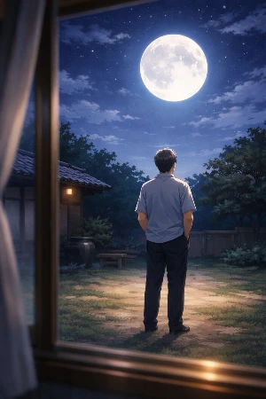달은 둥글고 환했지만 아버지의 뒷모습에는 긴 그림자가 드리워져 있었다.