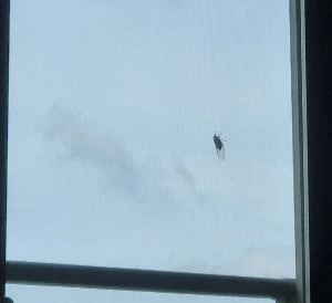 20층 가까운 곳까지 올라와서 방충망에 몸을 지탱해 가며