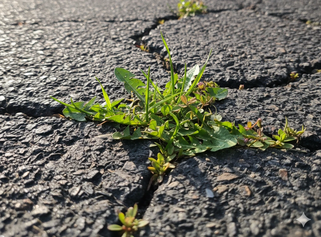 아스팔트 틈에서 자라는 풀 한 포기조차