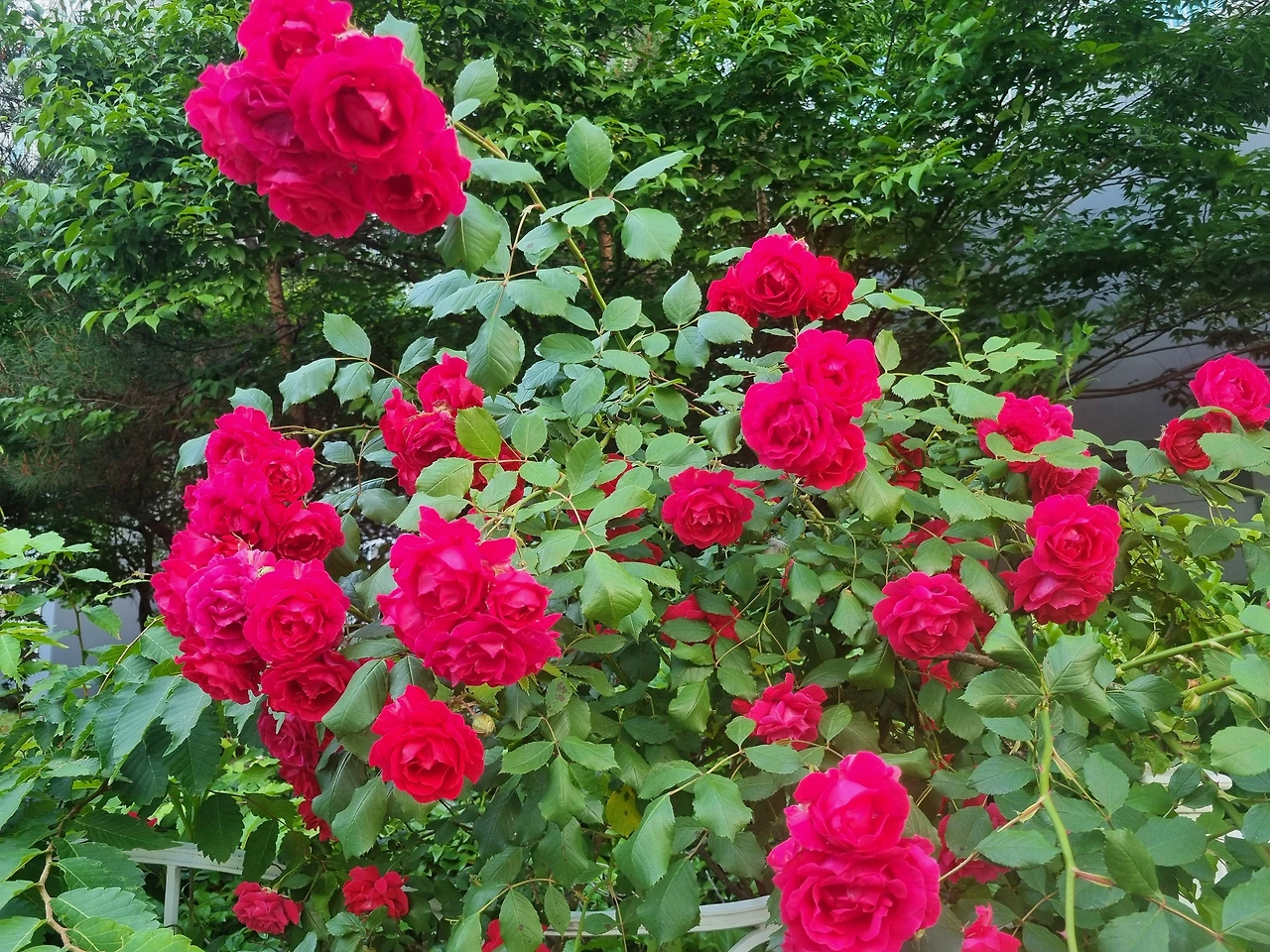 온통 빨간 장미들이 자태를 뽐내며 화사하게 빛나고 있다.