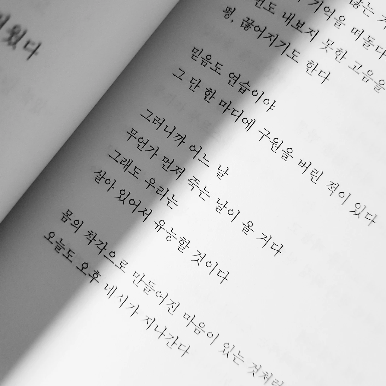 날씨 같은 애였다. 욕조에 잠겨서 물에 흐물흐물 젖어 있다가도 세상에서 가장 포근하고 노곤하게 되고는 했다. 나는 얘가 너무 신기했다. 얘도 이런 게 신기하다고 했다. 축축했다가 보송해지는 게. 오후 햇살이 들어오는 나른한 주말에 팔베개를 해주며 낮잠을 잤다. 어쩌면 얘는 사람이 아니라 솜뭉치나 양털이 아닐까. 나는 이미 어른 같은 어른이 되어버렸는데 이런 내가 감히 얘랑 같이 살아도 되는 것일까.