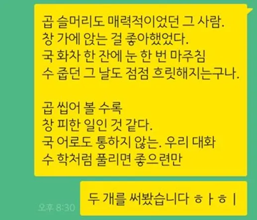 재미있어서 딱 하루만 빠진 N행시 프로젝트. 29개의 N행시를 지으며 머리가 말랑말랑 해졌길~