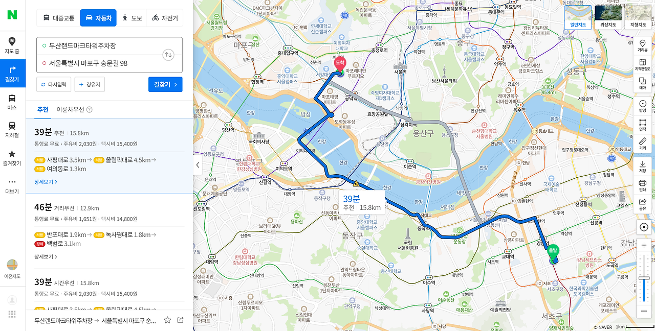 지도 앱을 통해 최단 거리와 최소 환승 경로 사이에서 더 짧은 이동시간과 더 편한 길 찾기 방식을 고민할 수 있게 되었다.