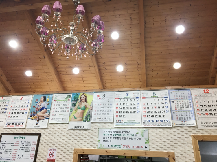 특이했던게 식당에 달력이 12개나 걸려있었다. 사장님에게 왜 12개를 걸어두셨냐 여쭤보니 달력을 여러 사람들이 줬는데 누가 준 건 걸고 누가 준 건 안 걸기가 미안해서 다 거셨단다. 와우