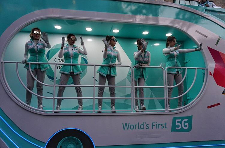 마지막으로 처음 성화봉송 프리젠팅 파트너로 참여한 KT의 카라반! KT는 이번 성화봉송 캠페인의 메인 컬러로 민트를 쓰고 있다. 성화봉송뿐만이 아닌가? 잘 모르겠다. 콜라와 동일한 단층 카라반에, 휴대폰 대리점 개업날을 연상케 하는 키크고 날씬한 모델들이 5G 엠씨스퀘어 안경(?!)을 쓰고 손을 흔들어준다. 가능하면 봉송 끝나고 저 안경 하나는 꼭 갖고 싶다..ㅋㅋ