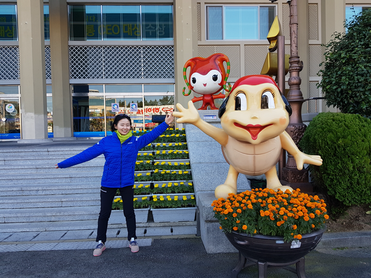 시청은 옛날 가옥 구조로 멋지게 지어져 있었다. 멀리서 봐야 그 느낌이 살아서 사진을 못 찍어온 것이 못내 아쉽다. 여수시의 캐릭터도 있었다. 언젠가부터 이런 조형물을 보면 꼭 함께 사진을 찍어야 직성이 풀린다.