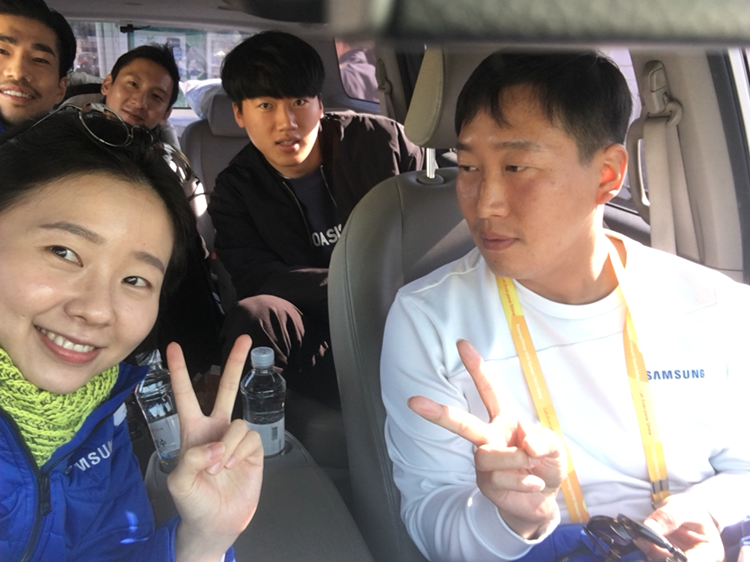오늘 나는 후발대였는데, 나까지 4명의 스탭 외에도 2명의 주자를 태우고 가야했다. 오늘도 역시 노쇼가 발생해서 전체 스탭 중 휴무로 쉬고 있던 카라반 감독님이 대체 주자로 뛰기로 해 그 감독님을 숙소에서 태웠다. 감독님이라고 해서 우린 모두 지긋하신 분을 기대했는데, 알고보니 94년생이시라고. 젊은 감독님과 함께 카스테라와 커피를 나누며 동광양 터미널로 향했다.