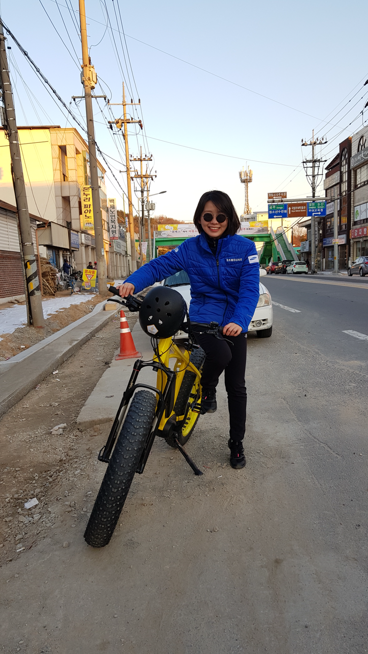 주자들이 뛰기 전 후에 가스통을 열어주고 잠가주는 역할을 하는 사람들이 타는 튼튼한 자전거는 볼 때마다 탐이 났는데 오늘 봉송로에서 만나 한번 핸들만 잡아보았다. 다음에 여유가 있을 때 꼭 타봐야지.