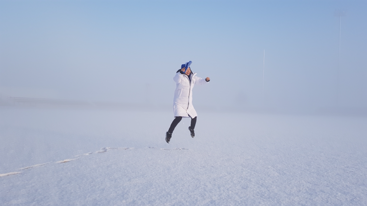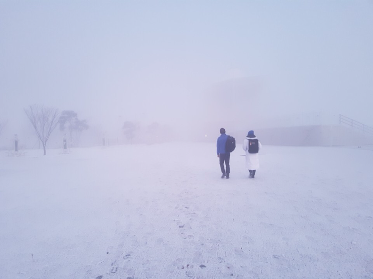주자들을 교육장에 들어보내고나서는 어디까지가 눈이고 어디부터가 안개인지 모를 운동장에서 다들 인생 사진을 건지기도 했다. 찍어준 동료가 우유니 사막이냐고. 어떻게 보면 남극 같기도 하고. 추운 날씨에 굳어버린 몸뚱이 때문에 토네이도에 휩쓸려가는 사람처럼 보이긴 하지만 배경이 열일했다.