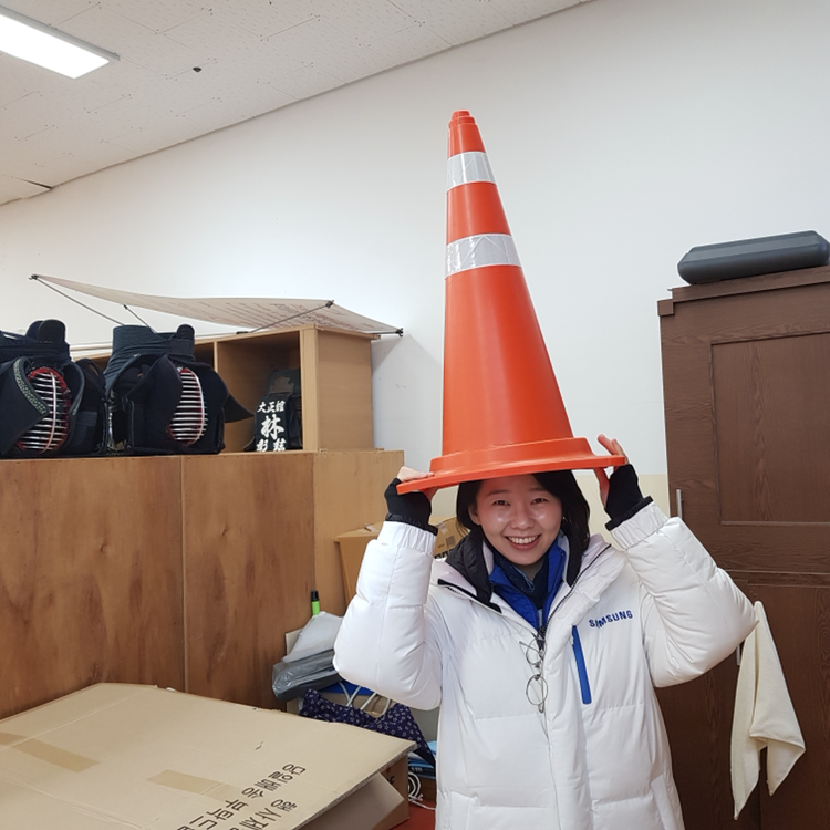 저녁이 되자 다른 프리젠팅 파트너사들은 퇴근을 하고, 거의 늘 늦게까지 CP를 지키는 조직위, 성화봉 판매팀, 우리 삼성 주자 운영팀만 남았다. 체육관 직원들이 퇴근하기 전에 테이블도 모두 접어서 정리하고, 마룻바닥을 지키던 우리는 또 한 번 즐겨보기로 했다.