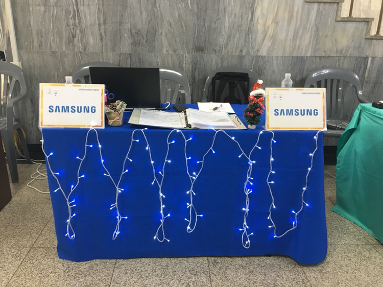 충주하면 생각나는 건 충주댐과 퇴직 후 사과 농사를 짓고 계시는 교수님. 충주문화회관에 박혀 댐도 교수님도 볼 수 없어 아쉽지만 그래도 힘차게 하루를 시작해봤다. 크리스마스가 며칠 앞으로 다가와 우리 데스크에도 조명 장식을 달았다. 주자들에게는 힘차게 하이파이브를 날려주고, 잘 갔다 오라고 인사도 해줬다.