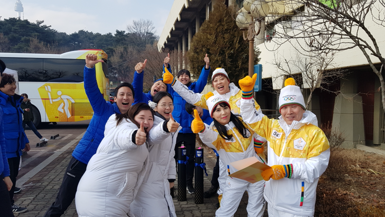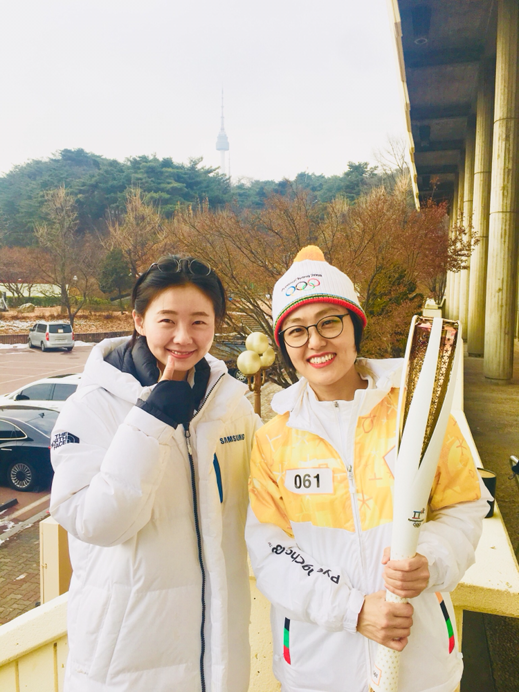 서울은 서울인지라 오늘도 역시 타사에서 초청한 셀럽 주자들이 있었다. 개그맨 김준현, 스타일리스트 한혜연 등. 바라만 보고, 오며가며 하이파이브만 했다. 우리도 셀럽 주자가 있었다. 쭉 읽어보신 독자(ㅋㅋ)들은 아시겠지만 우리 셀럽은 죄다 스포츠단이다. 블루밍스 임근배 감독님과 배혜윤 선수, 썬더스 문태영 선수가 주자로 나섰다.