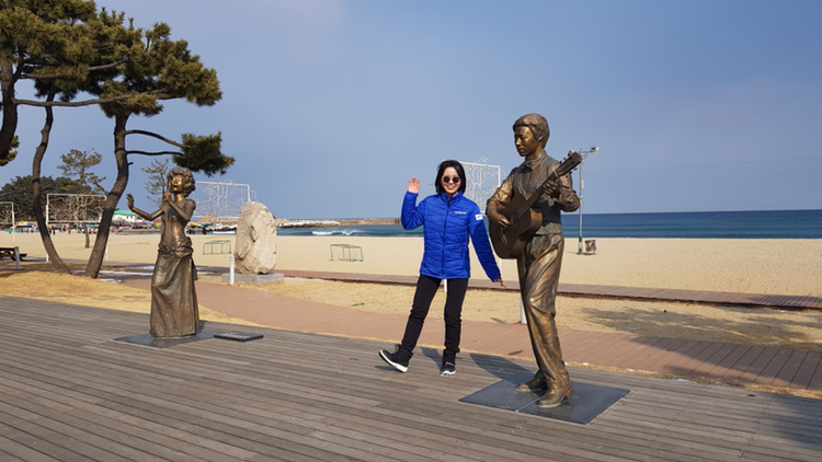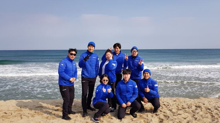 오늘 우리 주자들 집결 시간은 오후 3시 10분이었다. 순두부를 먹고도 시간이 남아서 낙산 해수욕장에 가서 잠깐 놀기로 했다. 단체 사진도 찍고 커피 마시며 회의도 했다.