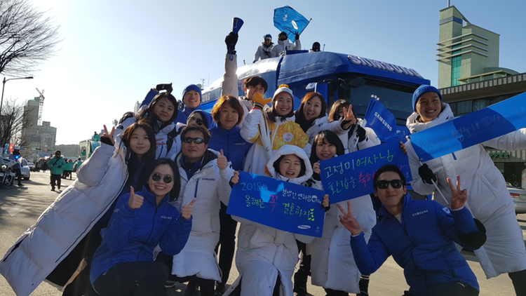 글로벌 호스피 주자들 외에, 또 중요한 주자들이 있었다. 바로 우리 회사의 한 팀장님과 프로님이 뛰는 날! 회사 사람들이 뛰는 날이면 가능한 모든 동료들이 봉송로에 나가서 응원을 한다. CP 붙박이 수준인 나도 오랜만에 봉송로로 향했다.