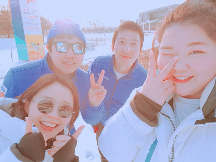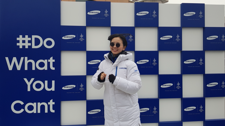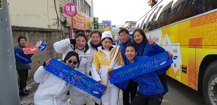 횡성에서는 2개 구간에 걸쳐 많지 않은 우리 주자들이 있었다. 오늘의 주요(?) 주자는 우리 팀 선배! 성화봉송에서 글로벌 호스피 프로그램을 담당한 선밴데 오늘은 주자로 뛰게 되었다. 그래서 나도 봉송로로 출동! 선배가 뛰기 전 전 슬랏은 봉송을 잠시 멈추고 작은 행사를 하는 Flame Stop이었다. 무대 설치하는데 가서 성화봉송 이후 처음으로 브랜딩 월에 서봤다. 더러운 부츠를 신고 올라가 얼룩을 만들어서 곧 내려오긴 했지만, 스타가 된 기분이랄까!?