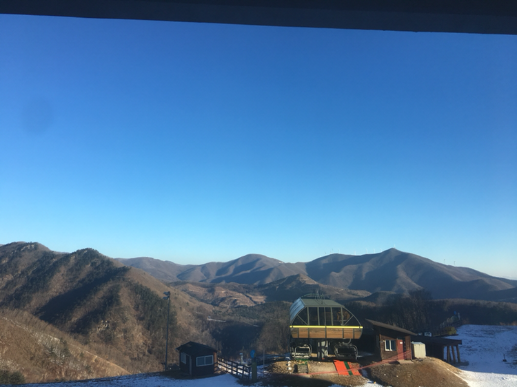 아주 파랗다못해 풍덩 빠지고 싶은 색깔의 하늘과 함께 하루를 시작했다. 그나저나 오투리조트는 왜 스키장과 썰매장 영업을 5시까지밖에 안하고, 기껏 만들어둔 리프트는 왜 놀리는지 모르겠다. 아깝다..