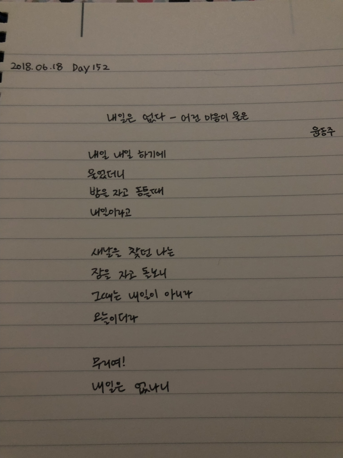 [152] 내일은 없다-어린 마음이 물은 by 윤동주