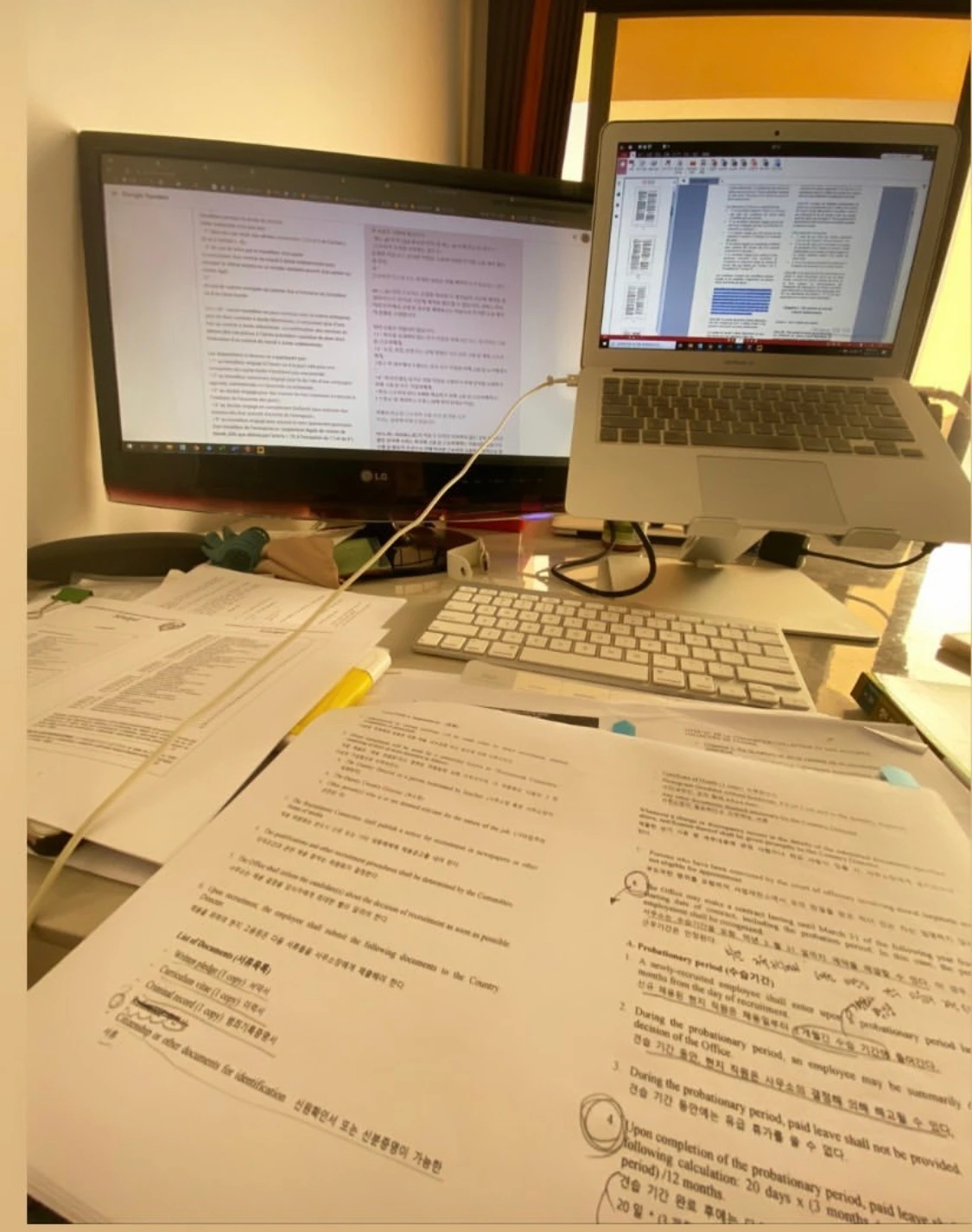 세네갈의 인사담당자로써 일을 하는 동안 가장 힘들었던 업무는 노동법을 읽어내는 것이었다. 모든 것을 다 읽진 않고 필요한 부분만 갈췌하긴 했으나, 불어로 되어있고 1997년 이후 개정된 적이 없는 법으로, 국가 노동협약(CCNI)을 같이 읽어야 했다. 또, 우리 사무소의 내부 규정이 별도로 만들어져 있지 않아 상충되는 부분이 많았다. 노동법과 노동협약, 본부 규정을 조합하고 상충하는 부분을 해석하여 세네갈 사무소 내부만의 규정을 만들었다. 이것도 완성도가 좋지 않아 1년은 넘게 수정 반복 작업을 했다. 특히 상충되는 순간 해석하기 나름 다르게 이해될 수도 있어 조심해야 할 부분이 너무 많았다. 아직도 보여주고 싶지 않은 치부라 느껴질 만큼 내부규정의 완성도에 속상하지만, 없는 것보단 존재하는 것이 나았다. 동일한 규정으로 동일한 혜택을 제공하고 직원들이 누릴 수 있는 규정 부분을 내부규정으로 선언함으로써 대체근무, 유연근무, 자녀양육휴가 등을 한국인-세네갈 현지인 할 것 없이 자유롭게 이용할 수 있었다. 초창기 한국인-세네갈인의 조금 불공평했던 부분을 규정을 확립하며 평등하게 만들 수 있었다. 처음으로 노동법을 공부하며 생각한 것이, 많이 아는 사람이 많이 누리고 많이 아는 사람이 어떤 싸움에서든 이기겠구나- 하고 생각했다.