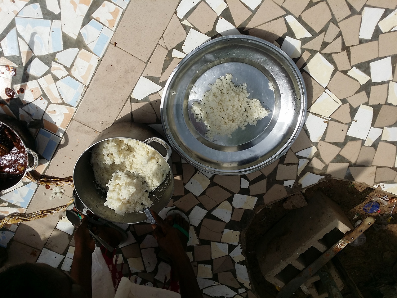 2년을 가까이 세네갈 요리를 먹으며 기름이 많은 요리, 건강에 좋지 않은 요리라는 선입견이 많이 박혀 있었던 것 같다. 하지만 배우고나니 생각보다 많은 영양소들과 부족한것들을 채워 줄 수 있는 요리들이 많은 것이었다. 다만 탄수화물 중심의 식문화이기 때문에 말랐지만 배가 불룩 하고 나온사람들을 쉽게 볼 수 있다. 날이 덥고 에너지보충을 해야하기 때문에 많은 식사량때문이 아닐까 생각이 든다. 빙 둘러앉아 다같이 먹고 한숨자고 나면 그렇게 행복할 수가 없다. (그래서 이곳에서 지내는동안 살이 많이 쪘나보다..^^) 다같이 둘러앉아 밥먹고 한숨자고있으면 또 세네갈의 특유의 차, 아따야를 누군가가 갖다준다. 세네갈의 요리에는 설탕이 들어가지 않기 때문에 당충전은 차나 커피류에서 많이 섭취하는 것 같다. 여튼, 오늘의 식사도 이렇게 배부르고 잉여롭게 끝나는 것 같다. 나른한 오후!