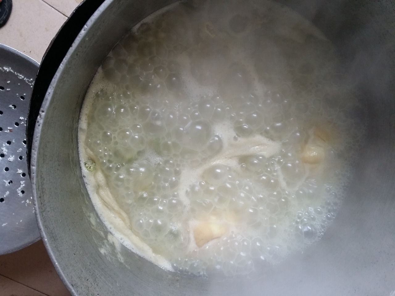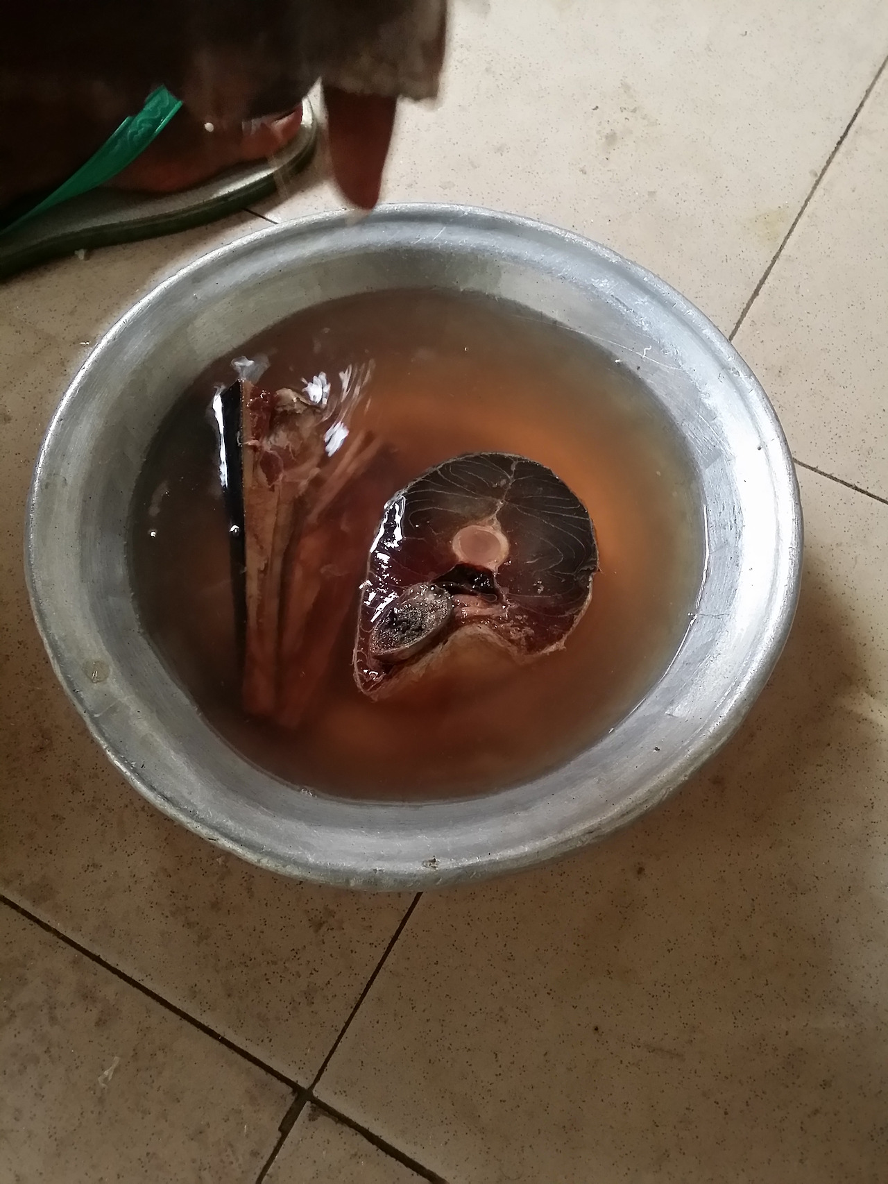 수프간쟈는 아주 많은 식재료가 들어가기 때문에 부유한 메뉴중 하나라고 소개를 해 줬다. 또 평소 내가 사용해보지 못했던 식재료들로 신기하면서도 재미있었다. 이곳 세네갈은 매년 따바스키라고 하는 양을 재물로 받치는 날이 있는데 양을 해체하여 분리를 한 후 양의 다리는 따로 잘라 뜨거운물에 담궜다 빼며 털을 깎아내려서 육수용으로 사용한다고 한다.