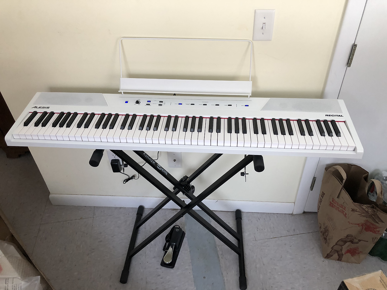 와 몇주 동안 고민 고민하다가, 이거는 사야할 것 같아서, 맘먹고 질렀는데... 드디어 왔다!!! 적혀있던대로 키감은 없지만, 그래도 88키에 화이트!!!!! 예쁘다!!!! 저는 알레시스 리사이틀 세미웨이트 88키 새거 아마존에서 구입했습니다. 키감없구요! 그냥 가벼운 키보드에요. 하지만 잔잔바리 저렴이로 구입하셔서 쓰기에는 (저는) 충분하다고 생각합니당!!! 알레시스에 헤비웨이트(키감 있는) 키보드 있는데, 그건 제겐 비싸서...ㅎㅎ 만약 키보드 찾아보시는 중에 여유가 있으시면 제꺼보다 한단계 위도 괜찮을 것 같아요! 저는 거미다리+ 페달 다 합쳐서 300불 줬습니다!