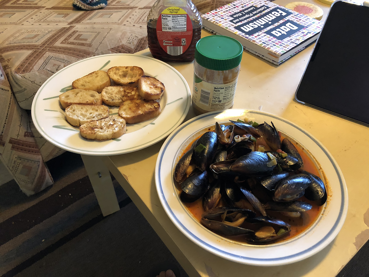 오늘은 집에서 스리라차 소스도 만들어보고 내츄럴 홍합 말고 토마토 소스 홍합 먹은 날!!! 이것도 맛있었다. 원래 매주 금요일이 레슨 날인데, 이번주는 화요일에 받았음으로 오늘은 저녁 6시에 있는 유학생 수업 말고는 공강!!!! (그래서 스리라차 만들면서 ㅋㅋㅋㅋ 논거였음) 점심도 푸짐하게 먹고 오랜만에 책도 읽었다!!! *책 추천!!!!!!!!!