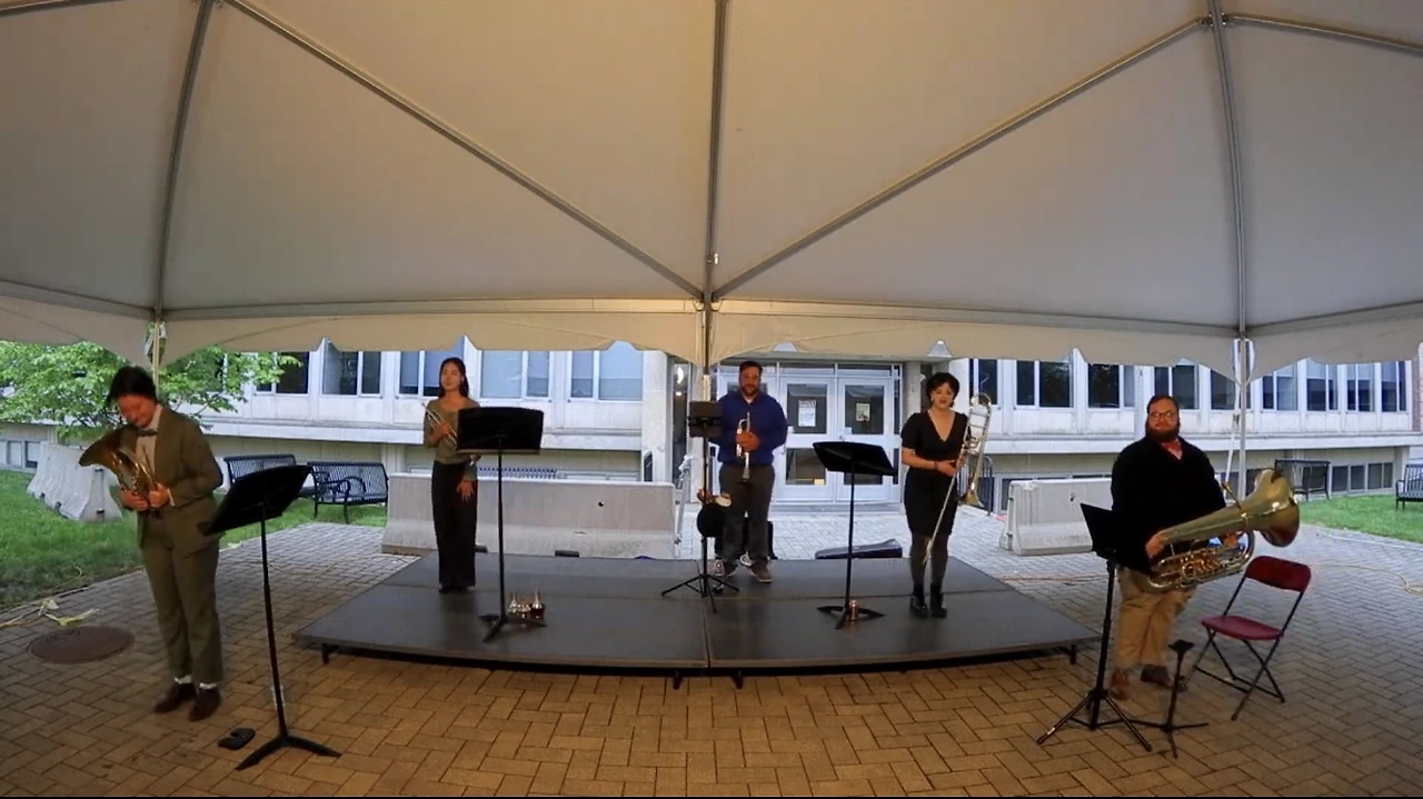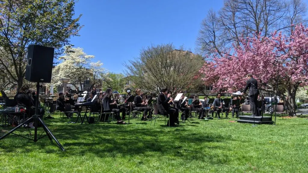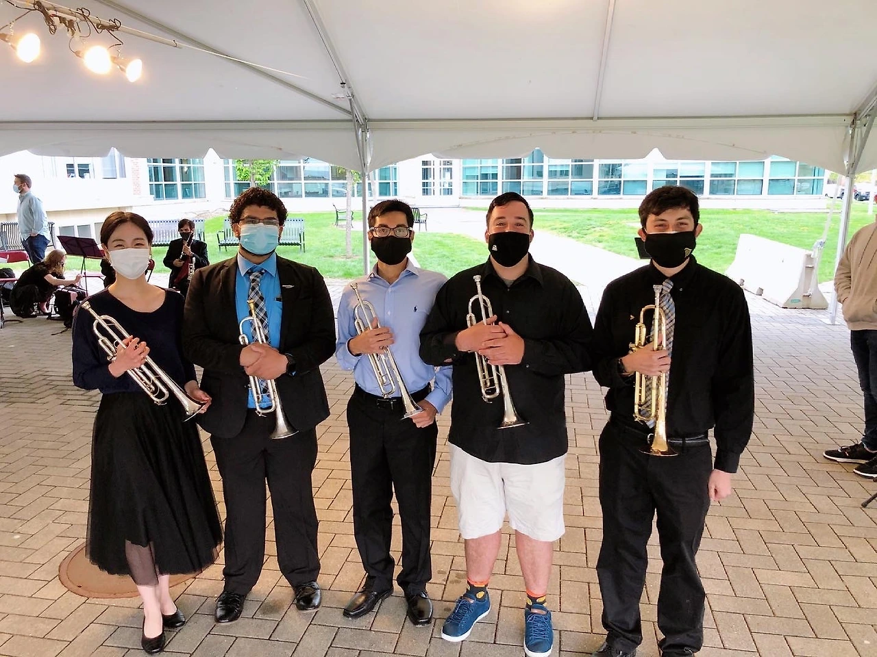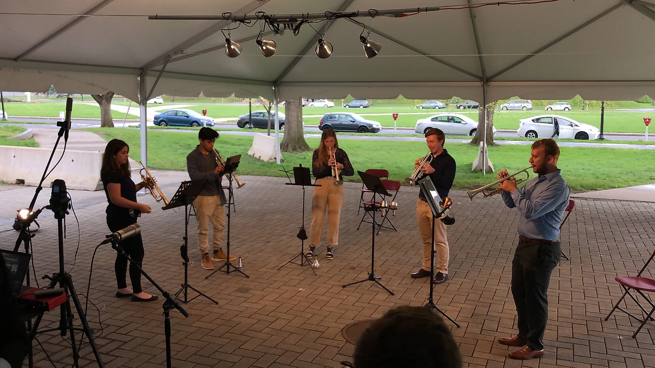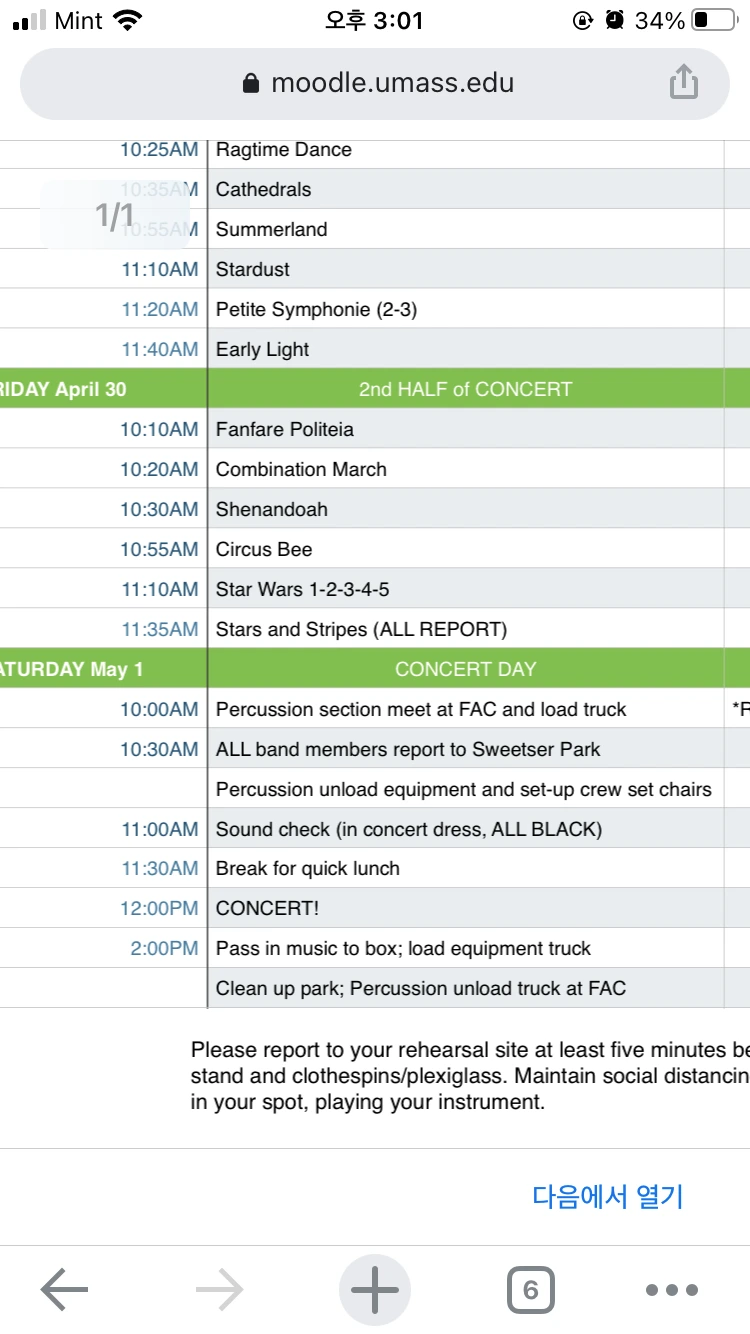 드디오 오늘은 윈드앙상블 연주날이다! 친구들에게 물어보니 이곳에서는 라이브 연주가 1년동안 한번도 없었다고 한다. 물론 나도 미국 오기 직전까지 라이브 연주를 하긴 힘들었으니까 근데, 1년동안 안했다니... 오늘이 이들에겐 정말 숨막히게 행복한 날일거란 생각이 들었다. 원래는 비가 올 수도 있다는 예고가 있었는데, 우리의 소망을 알았는지, 구름은 걷히고 맑은 하늘이 폈다. 우리는 공원에서 앰허스트 지역 사람들을 위한 공연으로 연주회를 했다. 덕분에 아름다운 자연 속에서 연주를 할 수 있어서 참 좋았다.