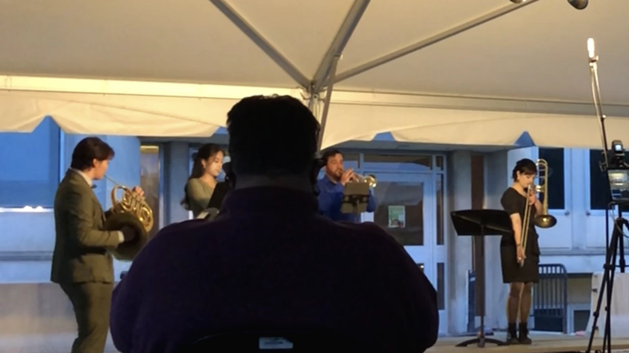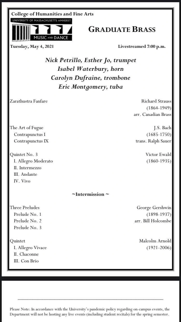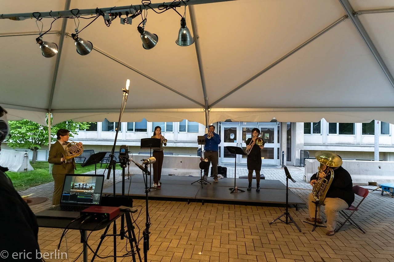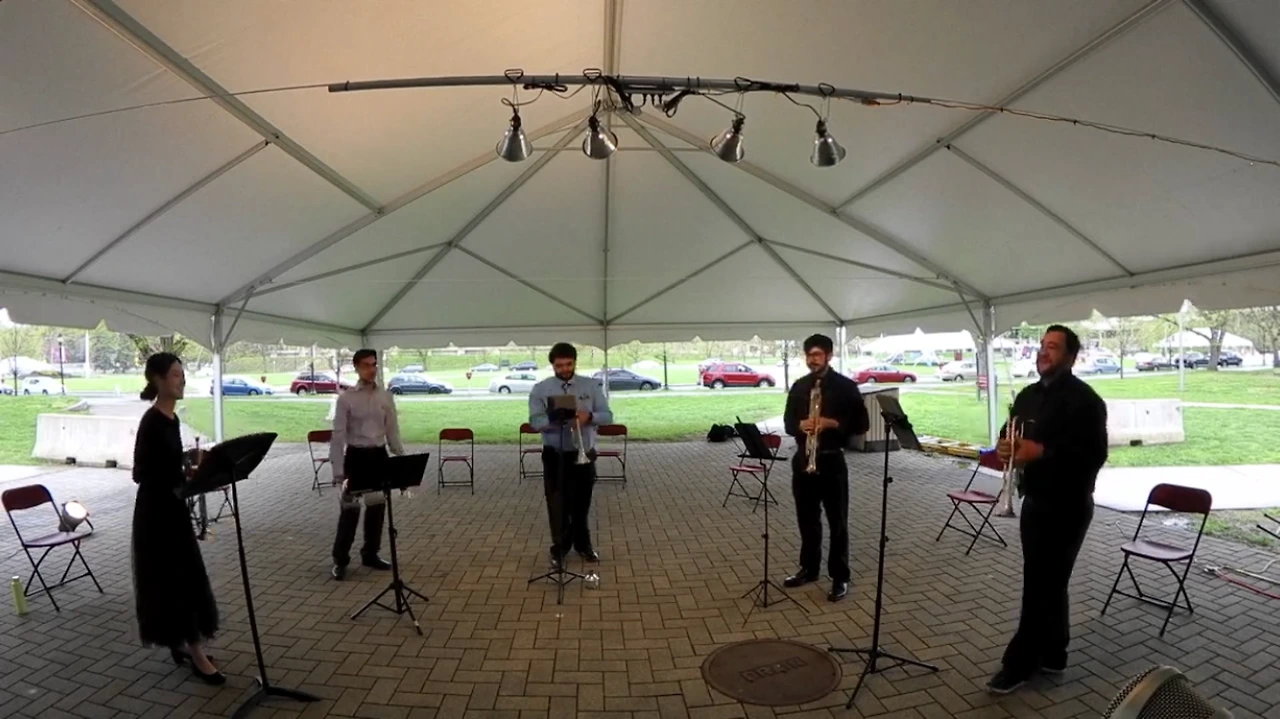 드디오 오늘은 윈드앙상블 연주날이다! 친구들에게 물어보니 이곳에서는 라이브 연주가 1년동안 한번도 없었다고 한다. 물론 나도 미국 오기 직전까지 라이브 연주를 하긴 힘들었으니까 근데, 1년동안 안했다니... 오늘이 이들에겐 정말 숨막히게 행복한 날일거란 생각이 들었다. 원래는 비가 올 수도 있다는 예고가 있었는데, 우리의 소망을 알았는지, 구름은 걷히고 맑은 하늘이 폈다. 우리는 공원에서 앰허스트 지역 사람들을 위한 공연으로 연주회를 했다. 덕분에 아름다운 자연 속에서 연주를 할 수 있어서 참 좋았다.