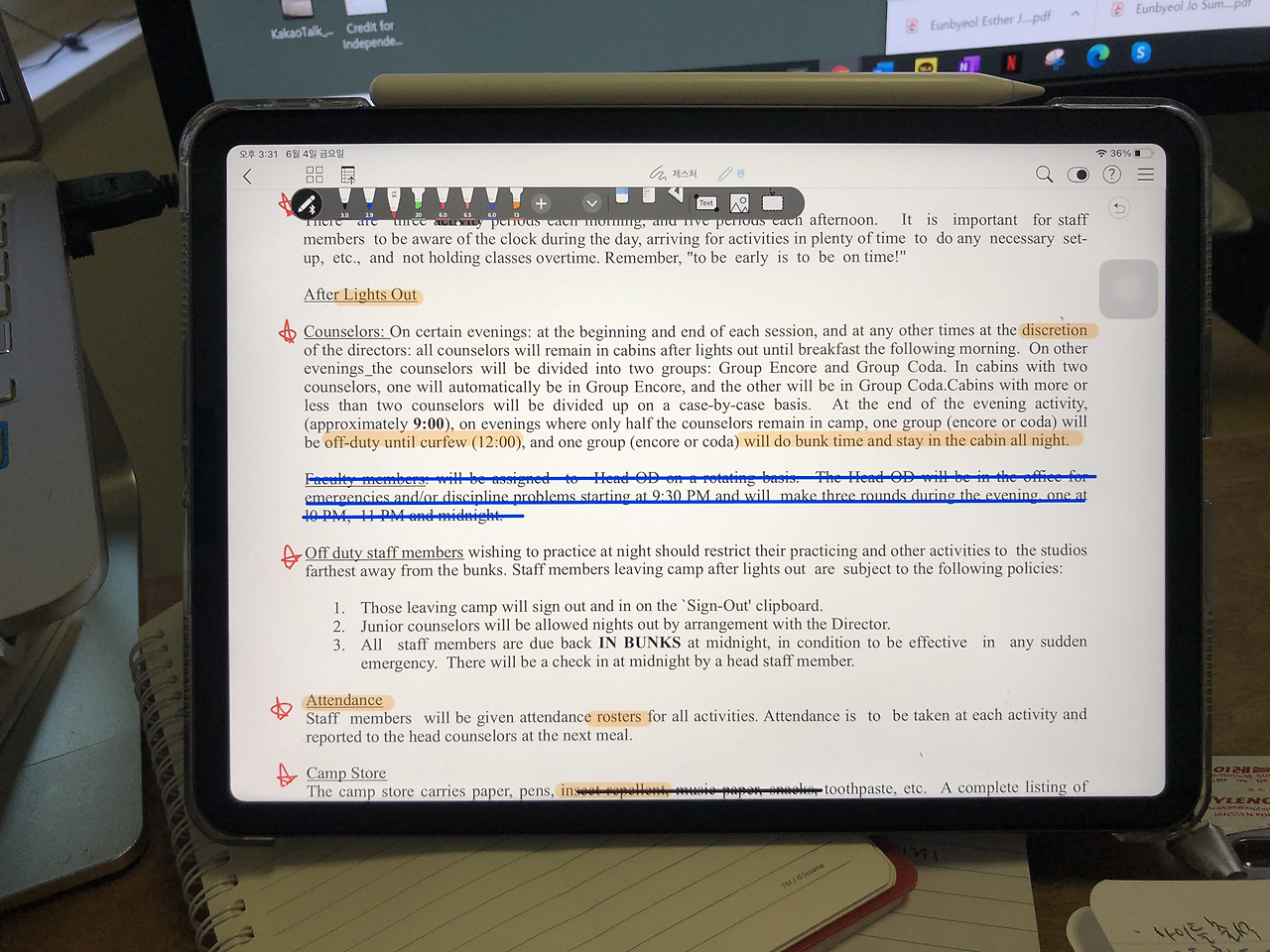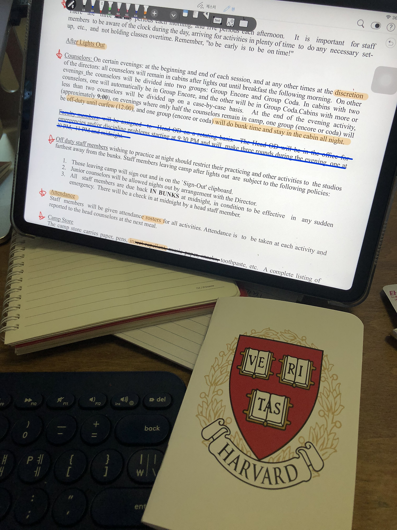 보스턴여행 끝나고 소연언니가 선물해준 하버드 노트 ㅋㅋㅋㅋ 하버드 가고 싶당^^ (예???) ㅋㅋㅋㅋ 포켓사이즈라서 들고 다니기 너무 좋을 것 같아서, 곧 들어가게 될 캠프 주요사항들이나 내용들을 이 노트에 정리해뒀다. 이번 캠프는 미국에서 가는 첫 캠프이기도 하고 돈을 받는 일이다보니 책임의식이 굉장히 높아져있다. 작은 일, 사소한 내용 하나도 꼼꼼히 이해하려고 하는중. 특히 서류문제를 예민하고 신속하게 처리하려고 한다. 나는 한 사람이지만, 캠프 입장에서는 거의 80명 되는 선생님들을 케어해야하니까, 내가 빨리 빨리 해야 그들의 수고가 덜어질거라고 본다. 암튼 어제 ㅠㅠㅠ SSN카드 서류부족하다고 메일이 와서, 다시 알아보니까 CPT승인 받고 i-20 갱신해서 그 서류를 제출해야한다는걸 알았다. 복잡한 서류의 세계. 남은 3주동안은, 건강검진, CPT승인, SSN 재심사에 몰빵해야한다.