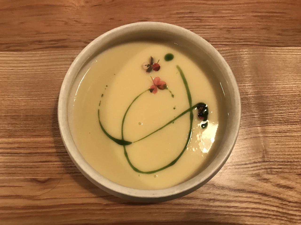 콜리플라워로 만든 수프는 오레곤주에서 나는 myrtle의 신맛이 더해서 오묘한 맛이었다. myrtle은 유럽에서는 약용식물로 기관지염이나 방광염, 주름과 여드름을 예방한다고 한다.