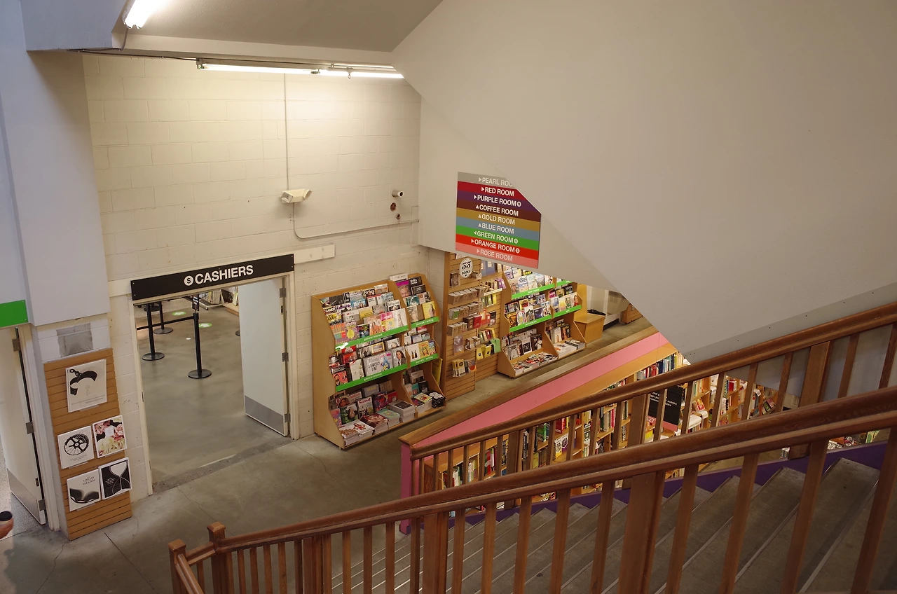 본점의 경우 규모가 크다. 그래서인지 파웰 북스만의 지도가 있다. 처음엔 지도를 보고 따라 다녔지만 카테고리 세분화에 따른 공간 구성이 매우 잘 정리되어있어 넓은 공간이 하나도 헷갈리지 않는다. 일단 보기 쉽게 카테고리 별로 색으로 구분되어 있다. 중간중간에 만날 수 있는 작은 안내판들을 통해 책을 찾는데 전혀 어렵지 않았다. 중간중간 매대도 있어 계산에도 용이하다.