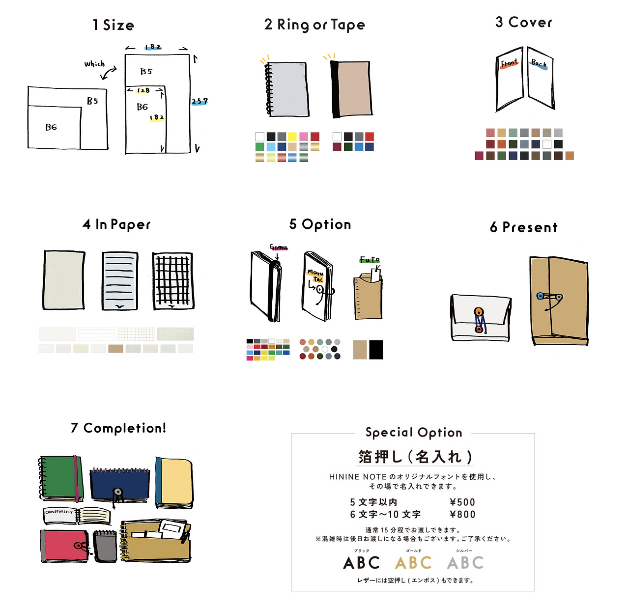 5. 옵션 - 노트에 고무나 종이태그, 주머니 등을 부착할 수 있고 이름을 새길 수 있다.