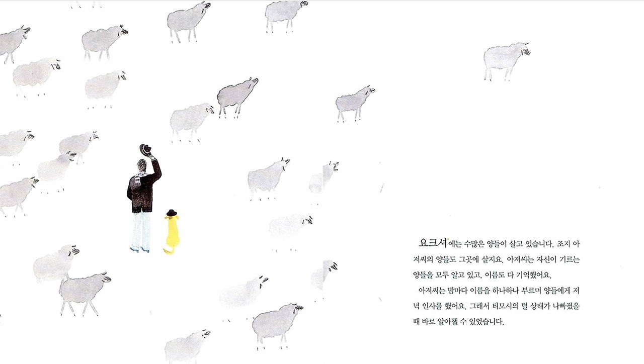 그리고 그것에 대한 답을 찾는 게 그렇게 중요할까, 스스로에게 물었어요. 물론 티모시처럼 순진하고 깊이 생각하지 않는 요크셔의 양에게는 너무 복잡한 문제였어요. 사실 대답을 찾기도 전에 잠이 들어버렸지요. "