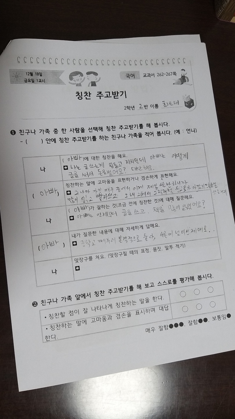 그 과제엔 칭찬에 맞장구치는 방법도 써져 있었다.