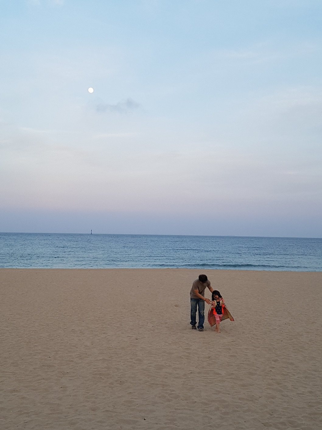 내 휴대폰 배경화면은 딸과 함께 찍힌 사진이다. 송정이다. 2016년 5월. 딸이 겨우 네 살 때.... 바다에 발을 담그는 것도 두려워했던 딸이지만 이상하게 바다를 좋아했다. 아빠와 함께 해변을 가로질러 바다를 향해 걸어 다가가는 걸 좋아했다. 그때마다 난 바람을 막아주기 위해 재킷이나 가져간 담요를 덮어줘야 했다. 감기 걸릴까 걱정이 되어 빨리 차로 데려갔으면 싶었지만... 딸은 한참 바다를 보며 놀았다. 바다를 보기만 해도 좋아라 하는 건 아이와 연인뿐인지도.