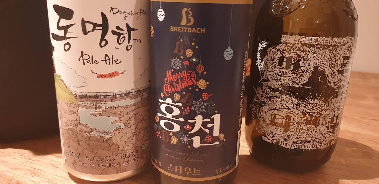 그렇게 산을 한참 보고, 숙소 근처, 찾아가기도 힘든 조용한 막국수집에서 엄청난 막국수를 먹고(범바위 막국수라는 곳인데, 나는 물막국수를, 딸과 아내는 명태비빔막국수를 시켰다. 둘 다 먹어본 결과, 꼭 명태 비빔 막국수를 시키시라. 막국수 좋아하는 감독에게 꼭 알려줘야지 하면서 먹었다), 이후 사우나에 가서 모처럼 한가하게 몸을 담그고, 언제나 그랬듯 한참을 일찍 나온 나는 로컬 맥주를 사서 숙소로 돌아가 혼자 마시며 두 여자를 기다렸다. 이날 산 맥주는 <홍천>이라는 브랜드의 IPA, 필스너를 샀는데 가격도 참아줄 만하고 맛도 괜찮았다.