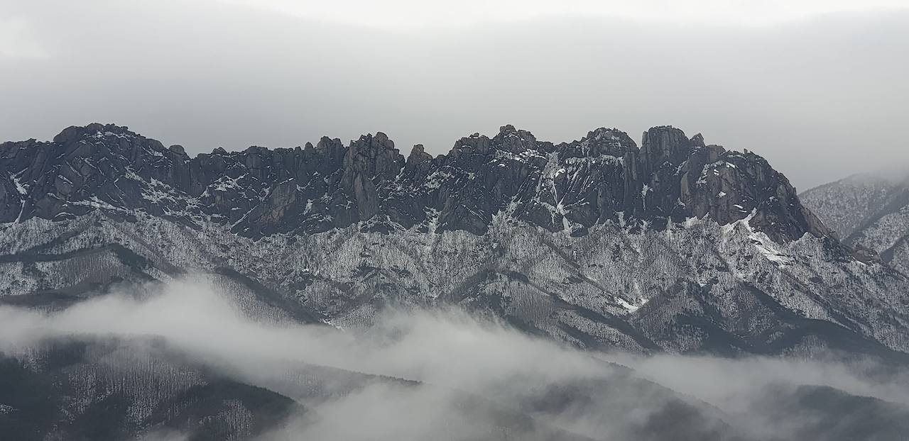아내가 예약한 숙소에선 눈에 덮인 울산바위가 보였다. 명색이 글로 먹고사는 사람이지만 할 수 있는 표현은 그저 동양화 같다 정도, 이십여 년 전에 가 본 삿포로가 생각난다는 정도, 각도를 잘만 잡아 찍으면 얼핏 알프스 같아 보인다 정도.... 진부하지만 뭐, 이 정도였다.
