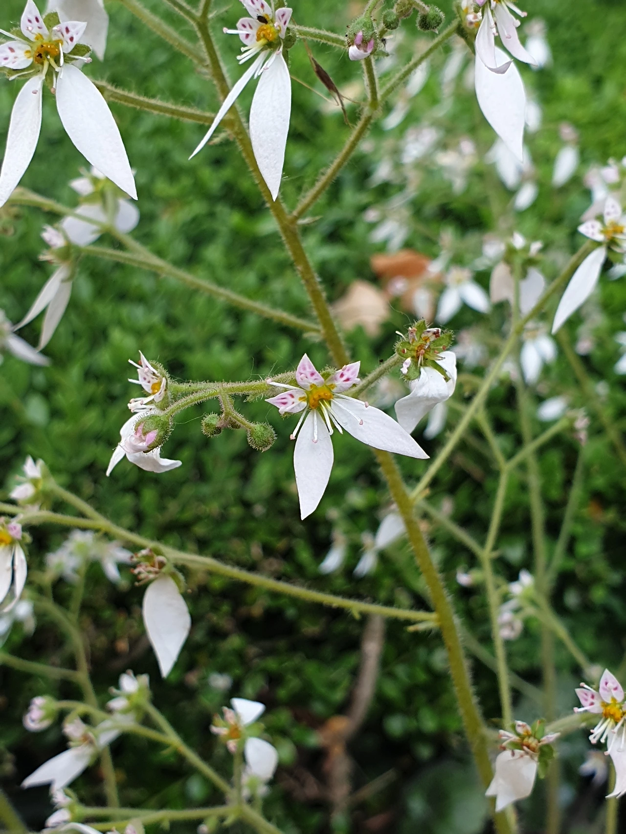 이 기이함은 “무심히” 지나치는 사람에겐 보이지 않는다. 가까이 다가서 오래 들여다보라. 꽃들은 종종 그렇게 얘기한다. 어떤 꽃이 여름밤의 폭죽처럼 멀리서도 그 꽃의 아름다움을 풍성히 자랑할 때, 어떤 꽃은 이렇게 조용히 다가오기를 기다린다. 우리 부녀가 박물관의 그 단단하고 웅장한 석벽 밑으로 다가가지 않았더라면 바위취는 자신의 이야기를 들려주지 않았을 것이다. 그 아름다움, 작고 기이한 아름다움을.